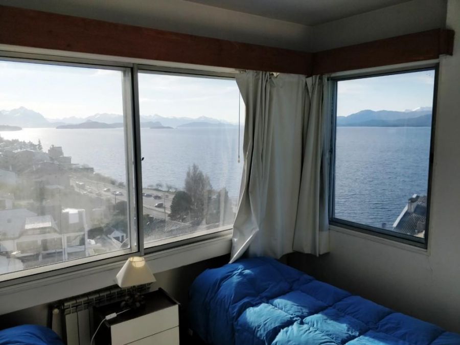 Departamento de dos dormitorios con excelente vista al lago, un baño completo renovado y un toilette con ducha. Cocina independiente. Calefacción por radiadores.-